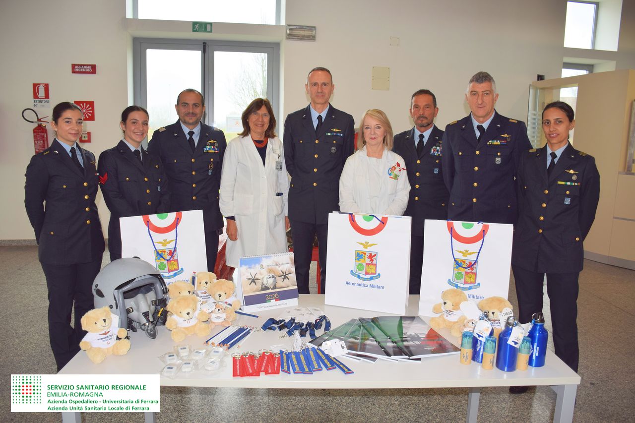 Infatti, nella giornata di oggi (giovedì 18 dicembre 2025), una delegazione del Comando Operazioni Aerospaziali (COA) di Poggio Renatico ha fatto visita e consegnato doni ai bambini ricoverati nei Reparti di Pediatria, Oncoematologia Pediatrica e Chirurgia Pediatrica dell’ospedale di Cona.
