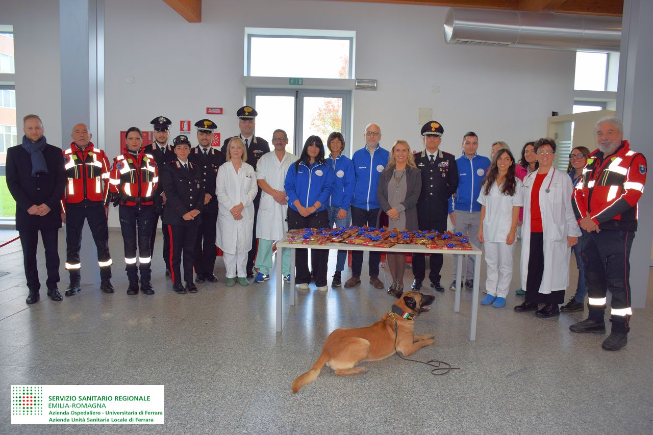 Il Comandante Provinciale dei Carabinieri, Col. Alessandro Di Stefano ed il Presidente dell’Associazione Giulia ODV, Sig. Michele Grassi, unitamente ad una piccola delegazione di militari e volontari, sono stati affettuosamente accolti dalla dott.ssa Nicoletta Natalini, Direttrice delle Aziende Sanitarie di Ferrara, dal dott. Claudio Vella, Direttore del Dipartimento Materno Infantile, dalla dott.ssa Simona Rinieri, Referente dell’Oncoematologia Pediatrica, dalla dott.ssa Franca Mazzini, Coordinatrice infermieristica della Pediatria e Chirurgia Pediatrica, accompagnati da personale sanitario delle pediatrie.