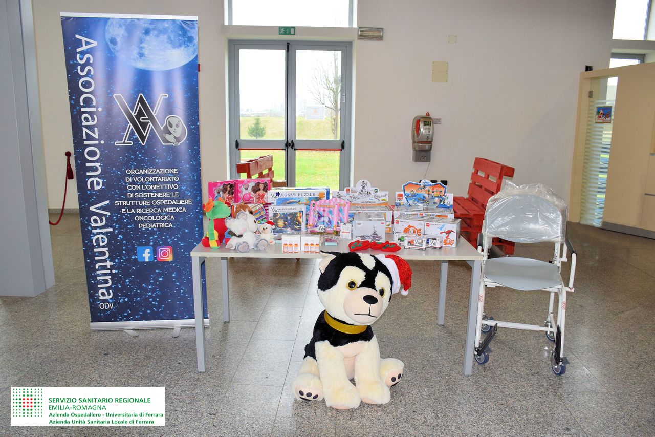 Questa mattina, martedì 16 dicembre 2025, l’Associazione “Valentina ODV” di Cento ha donato peluches e giocattoli ai Reparti di Pediatria, Chirurgia Pediatrica e Oncoematologia Pediatrica dell’Ospedale di Cona.