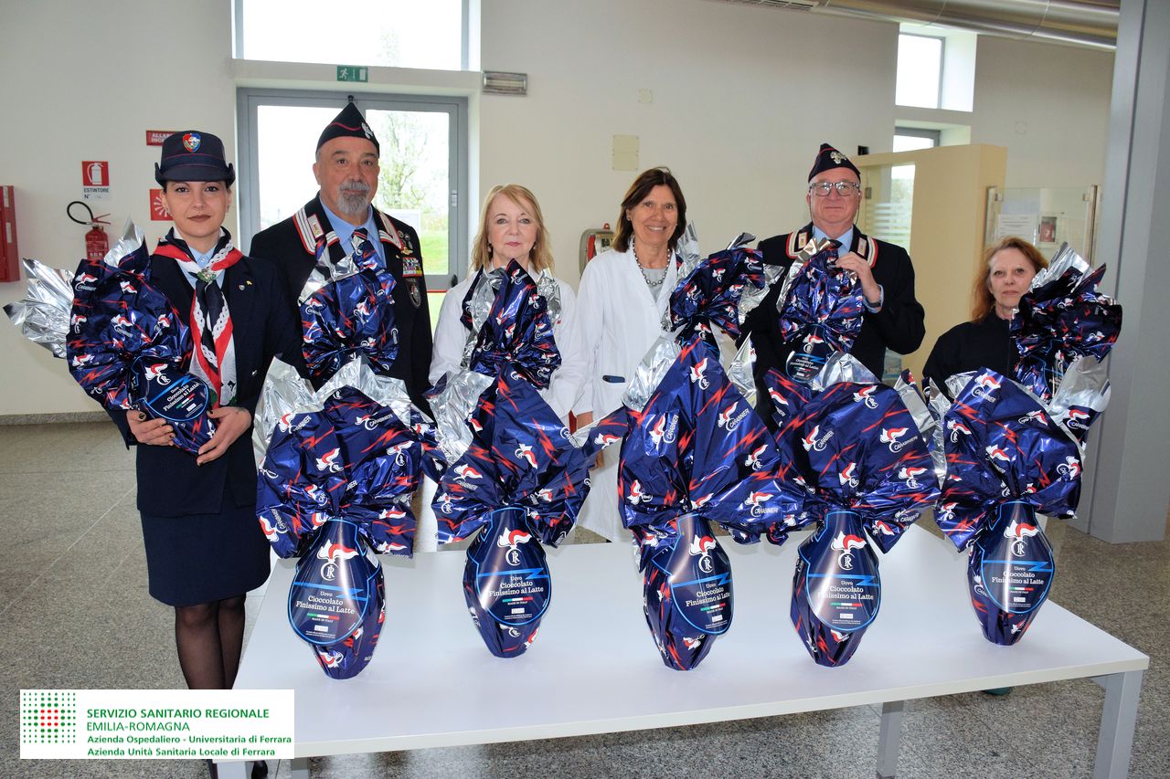 In occasione delle prossime festività pasquali l’Associazione Nazionale Carabinieri, Sezione di Cento, proseguirà nella sua lodevole attività di servizio a beneficio della collettività. Quest'anno l'Associazione ha organizzato una speciale iniziativa per portare un sorriso ai più piccoli: sono state donate delle uova di cioccolato con confezione personalizzata dell’Arma ai bambini ricoverati nel Reparto di Pediatria dell’Ospedale di Cona.