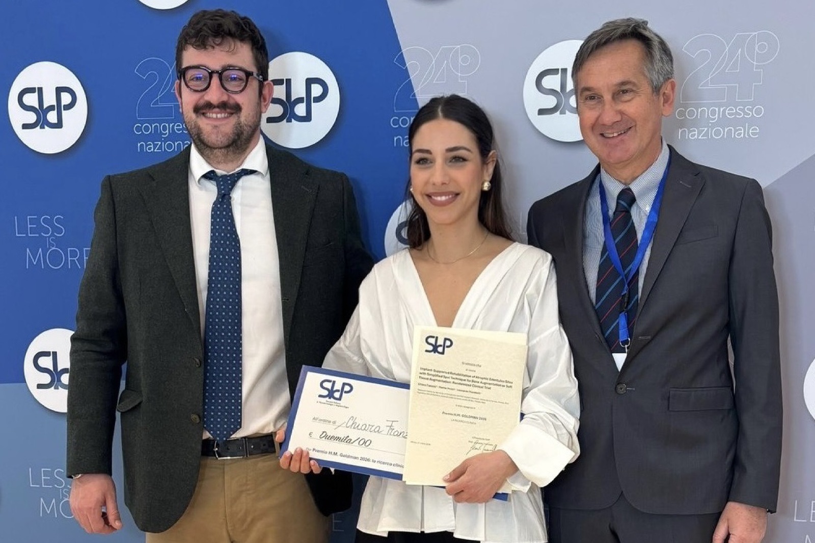 In occasione del 24° Congresso Nazionale della Società Italiana di Parodontologia e Implantologia (SIdP), svoltosi a Rimini dal 19 al 21 marzo 2026, è stato assegnato il prestigioso Premio Henry Goldman per la ricerca scientifica ad uno studio clinico condotto da un gruppo di ricerca dell’Università di Ferrara. La ricerca premiata, dal titolo "Implant-supported rehabilitation of atrophic edentulous sites with simplified SPAL technique for bone augmentation or Soft Tissue Augmentation: a randomized clinical trial", ha messo a confronto due tecniche chirurgiche per la correzione dei difetti ossei associati al posizionamento di impianti dentali in aree atrofiche delle ossa mascellari. Lo studio si inserisce nel filone della chirurgia rigenerativa avanzata, con particolare attenzione all’ottimizzazione degli esiti implantari in condizioni anatomiche complesse.
