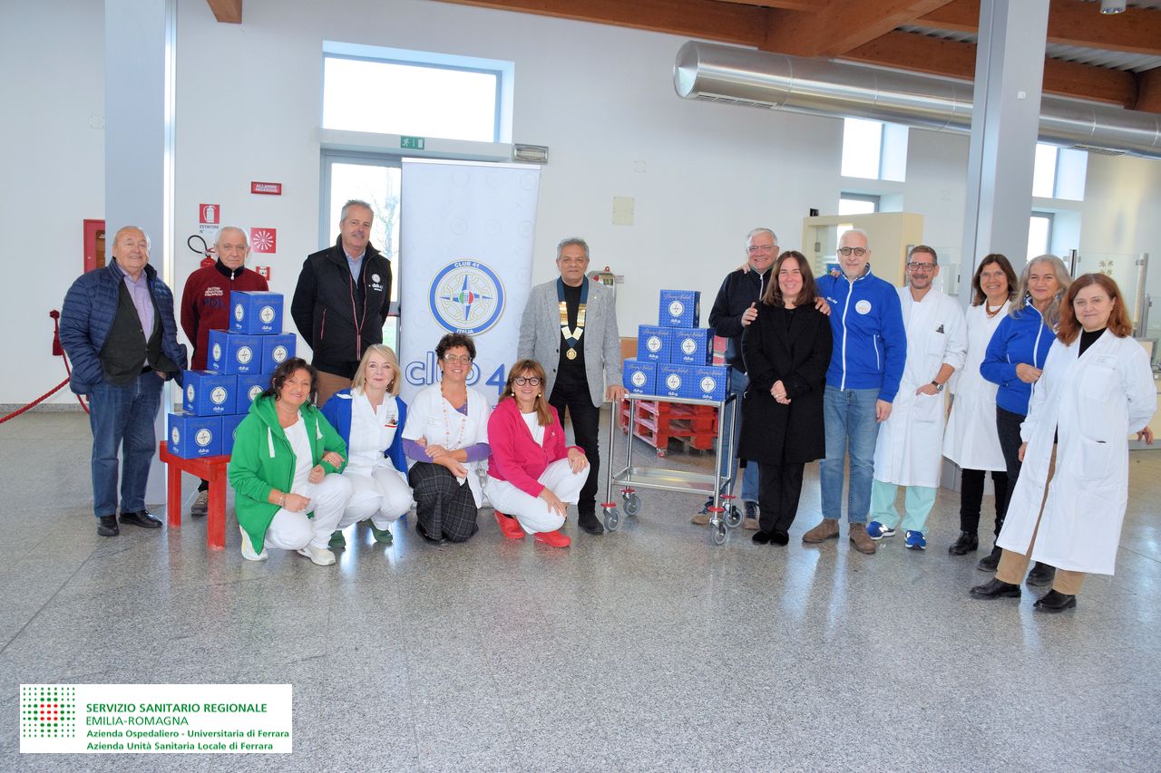 Il Club 41 di Ferrara ha rinnovato l’iniziativa di donare pandori ai piccoli pazienti ricoverati nei Reparti Pediatrici e nel Day Hospital (DH) di Onco-Ematologia Pediatrica e ai loro familiari. L'evento, che sottolinea l'attenzione verso la popolazione più debole, si è svolto oggi (venerdì 12 dicembre 2025). La consegna è avvenuta d'intesa con l'Associazione Giulia (presieduta da Michele Grassi) e alla presenza dell’Assessore Cristina Coletti. Erano presenti per il Club 41 il Presidente Francesco Panebianco e il Segretario Martin Dallago, insieme ad altri soci, mentre per la Direzione Generale del S. Anna, la dottoresssa Anna Maria Lucia Giorgetti; ad accogliere i donatori anche la direttrice della Pediatria professoressa Agnese Suppiej.