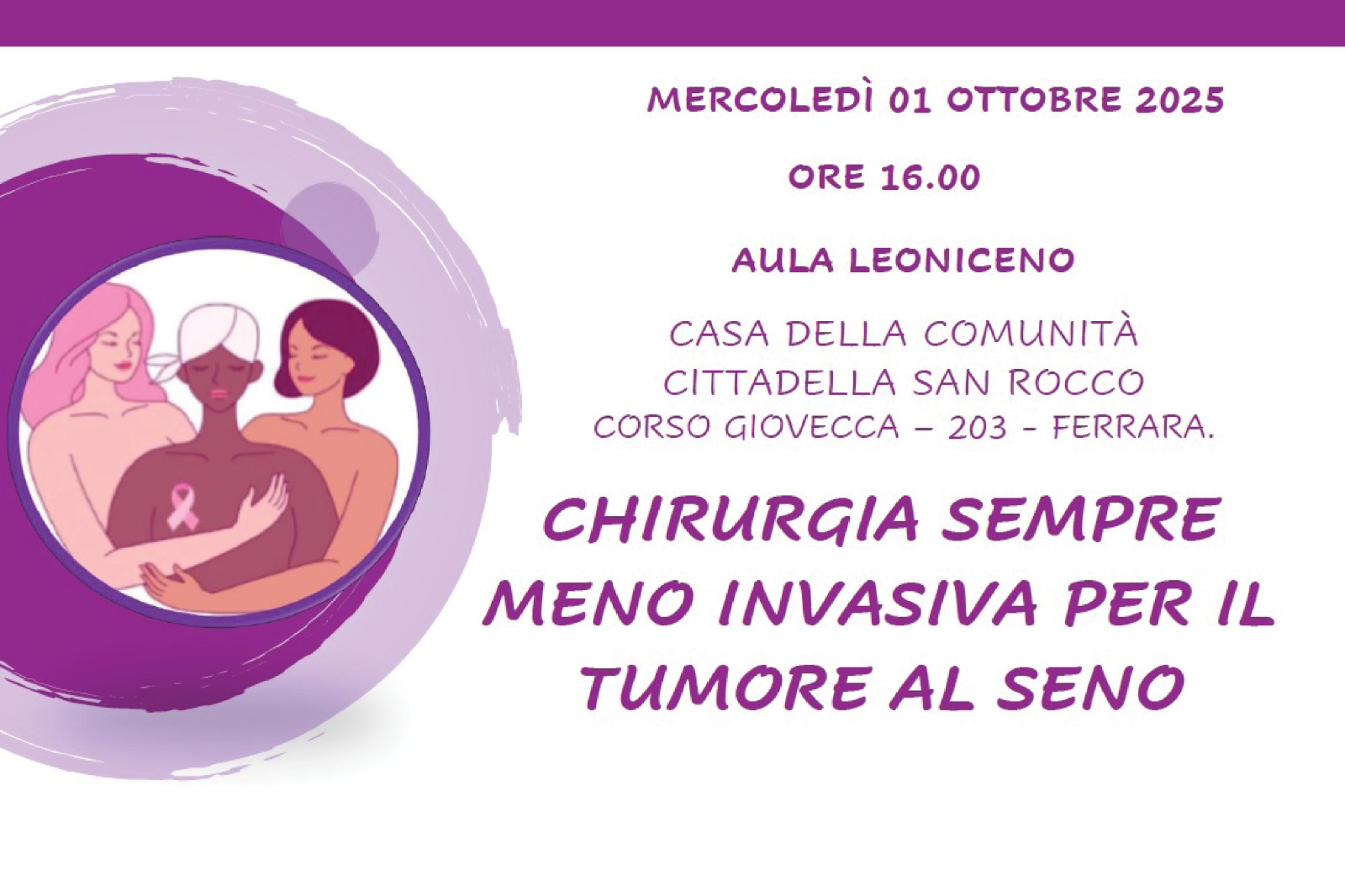 Il calendario delle iniziative per l'“Ottobre Rosa 2025” si apre mercoledì 1 ottobre 2025 con un incontro intitolato "Chirurgia sempre meno invasiva per il tumore al seno". L'evento è previsto per le ore 16.00 e si terrà presso l'Aula Leoniceno, situata all'interno della Casa della Comunità Cittadella San Rocco, a Ferrara, in Corso Giovecca 203.